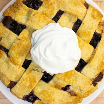 This video provides a step-by-step guide to making a blueberry pie, including lattice design and baking techniques.
