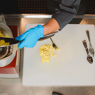Prepare scrambled eggs using various cooking methods; Understand the importance of allergen-free cooking in healthcare settings; Test food for different dietary levels